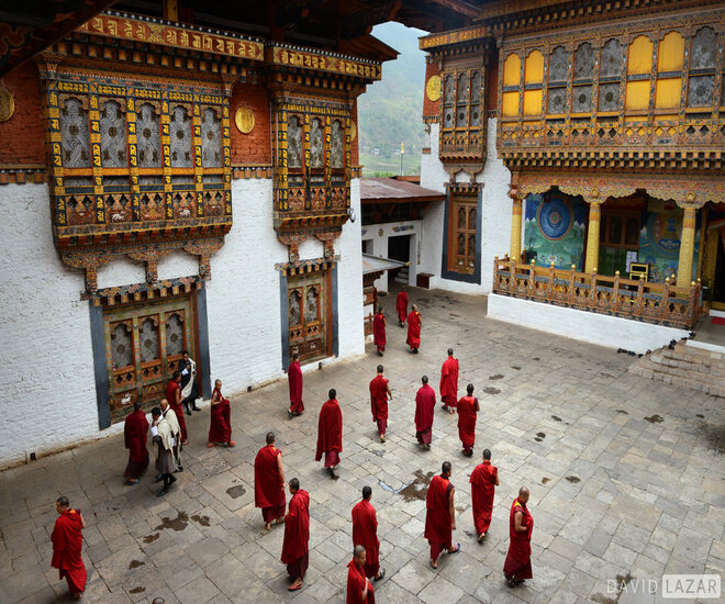 The Kingdom of Bhutan is a small country located to the eastern side of the mighty Himalayas at 27º28.0’N and 89º38.5’E in South Asia. It is a landlocked country and has the two Asian giants China (to the north) and India (to the east, west and south) as its neighbors. This Himalayan kingdom has an area of 14,824 square miles and a population of 708,427 (2011 estimate). The main ethnic groups of Bhutan are Ngalops, Sharchops, and a Nepalese ethnic group called Lhotshampas in Dzongkha. The terrain of Bhutan is mountainous for the most part, but there are also some beautiful valleys and grasslands. The climate is tropical in the south while the central part experiences cool winters and hot summers. In the north, the winters are severe and summers are cool. Bhutan is rich in natural resources such as hydropower, timber, gypsum, and calcium carbonate. It is also rich in flora and fauna and is home to many rare species of animals such as the Golden Langor
